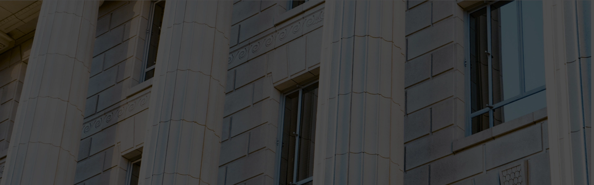 This image features a close-up view of a classical-style building facade constructed from light-colored stone blocks. Prominent fluted columns span vertically across the structure, framing tall, narrow windows with reflective glass. Above the windows, decorative engravings add a sense of formality and heritage. The architectural style suggests a government, legal, or academic institution, conveying authority, permanence, and civic identity. This image is suitable for use in legal, historical, or architectural documentation.