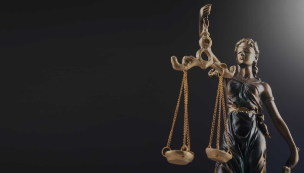 Lady Justice statue holding balanced scales with blindfold, symbolizing fairness and the legal system.